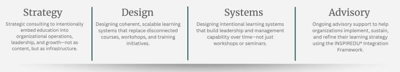 InspirEDU Design Co. is a strategic consulting and design firm helping organizations operationalize education as a core growth strategy. Through structured integration, we design learning ecosystems that strengthen retention, engagement, and long-term scalability.